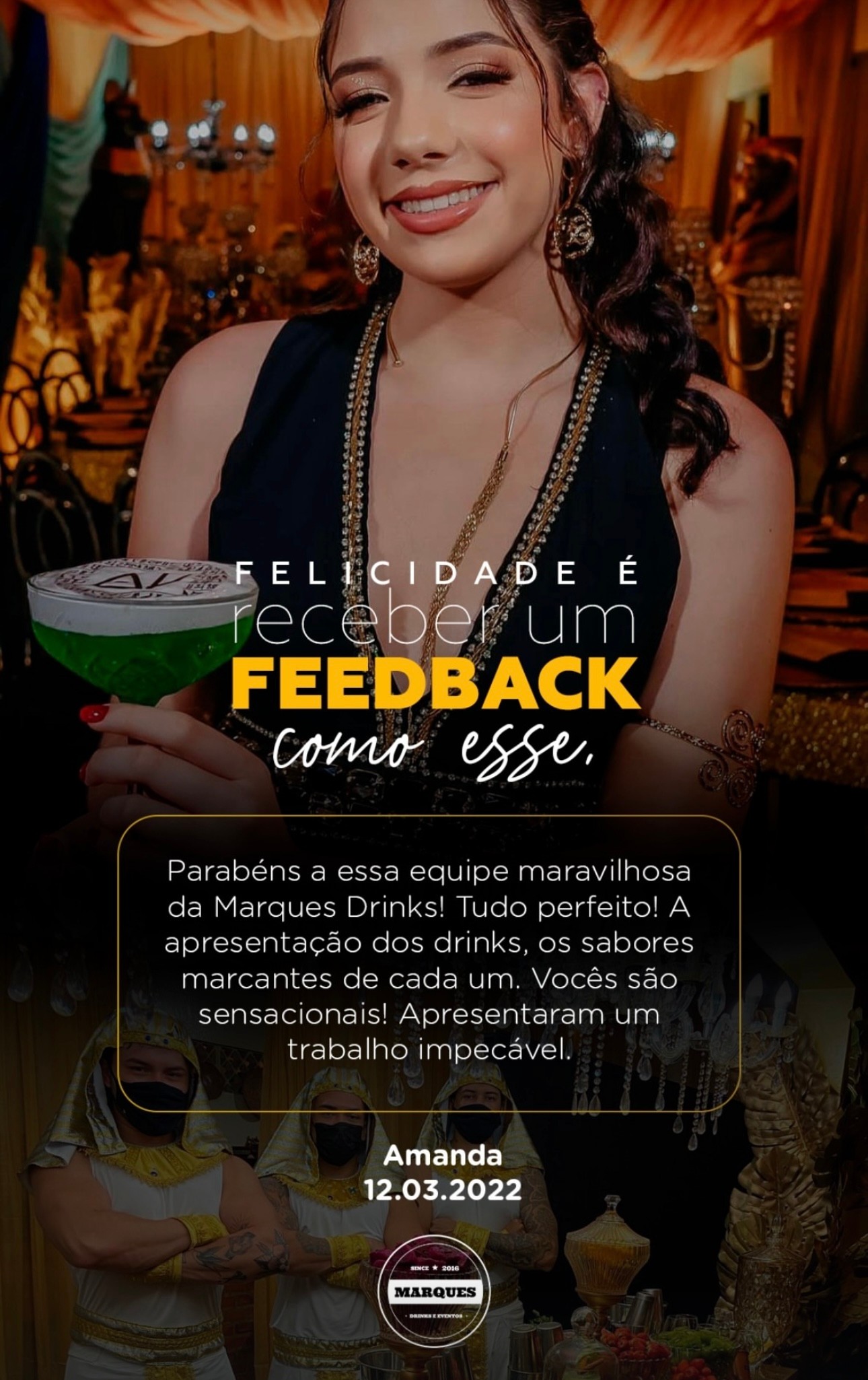 Desde 2006, a Marques Drinks leva hospitalidade e inovação aos eventos do Pará. Criada pelos turismólogos Jr Marques e Wendel Henrique, a empresa é pioneira em coquetelaria sustentável e valorização da cultura amazônica. Mais do que um bar, entrega uma experiência completa — unindo estética, sabor e emoção em cada brinde.