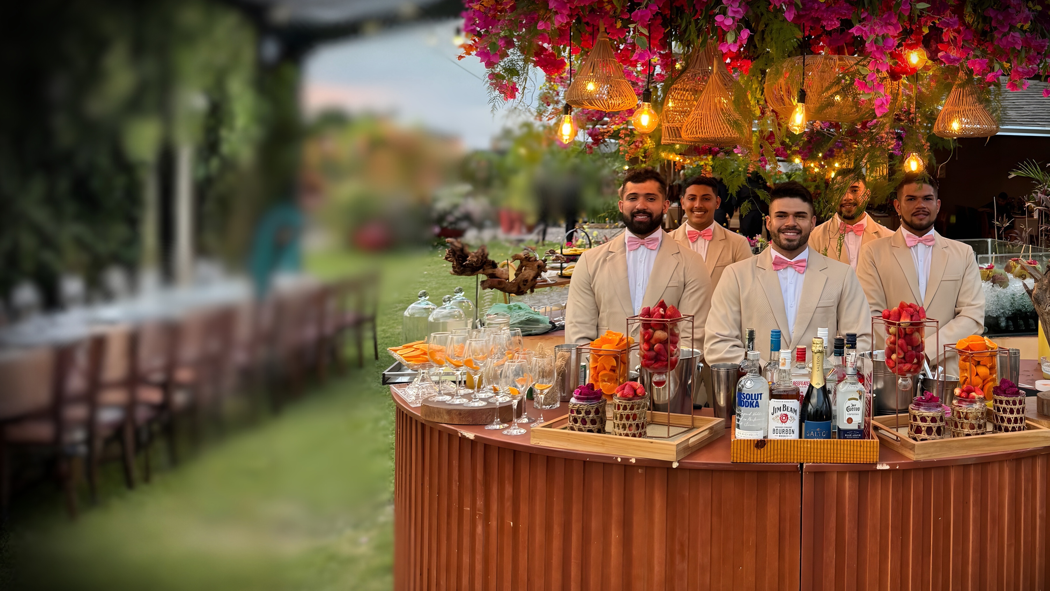 Destaques: • Carta com até 12 drinks alcoólicos e sem álcool • Frutas selecionadas e taças de vidro elegantes • Balcão personalizado e equipe completa